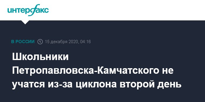 Москва. 15 декабря. INTERFAX.RU - Занятия первой смены в школах Петропавловска-Камчатского для учеников всех классов во вторник отменены из-за последствий циклона, сообщили "Интерфаксу" в мэрии краевого центра.