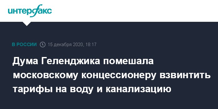 Москва. 15 декабря. INTERFAX.RU - Дума Геленджика дважды отклонила предложения компании "Концессии водоснабжения - Геленджик" о значительном повышении тарифов на 2021 год, сообщила пресс-служба администрации курорта во вторник.