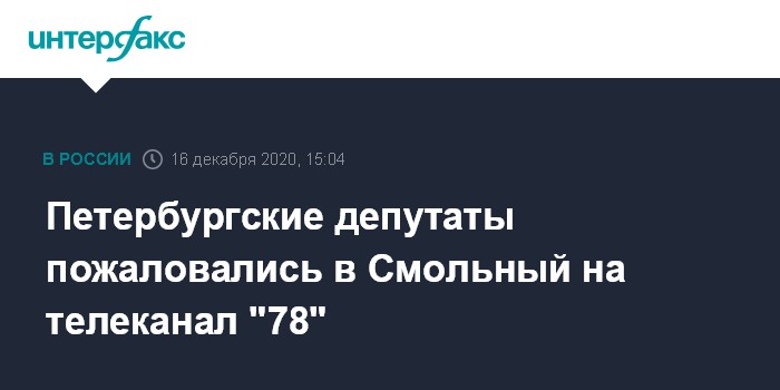 Москва. 16 декабря. INTERFAX.RU - Несколько депутатов Петербургского ЗакСобрания пожаловались вице-губернатору Александру Бельскому, курирующему комитет Смольного по печати и взаимодействию со СМИ, на то, что телеканал "78" и телеграм-каналы распространяют о депутатах и их родственниках недостоверную негативную информацию.