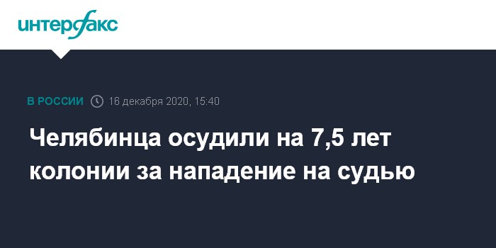 Москва. 16 декабря. INTERFAX.RU - Суд вынес обвинительный приговор жителю Челябинской области, напавшему на женщину-судью, сообщает пресс-служба областной прокуратуры в среду.