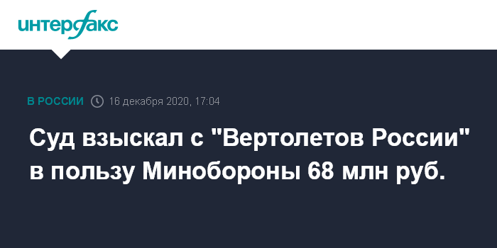 Суд взыскал с "Вертолетов России" в пользу Минобороны 68 млн руб.