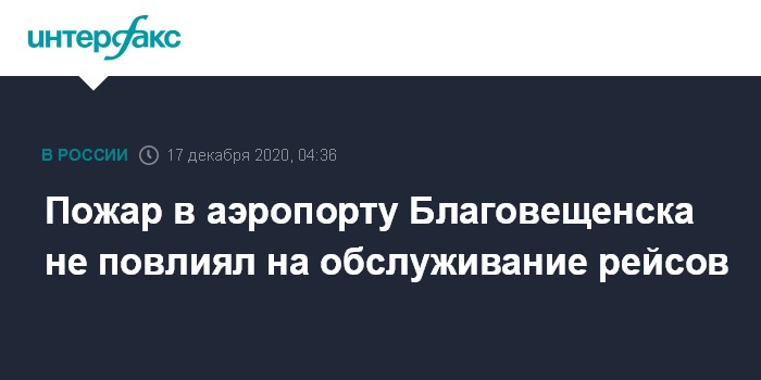 Москва. 17 декабря. INTERFAX.RU - Аэропорт Благовещенска работает штатно после пожара в международном терминале, сообщила пресс-служба аэропорта журналистам в четверг.