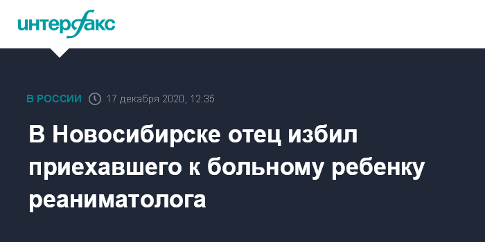 Москва. 17 декабря. INTERFAX.RU - В Новосибирске началась доследственная проверка сообщений СМИ о нападении отца заболевшего ребенка на реаниматолога, который приехал к ним домой по вызову. Об этом сообщило областное управление СКР.