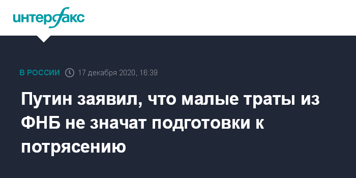 Путин заявил, что малые траты из ФНБ не значат подготовки к потрясению
