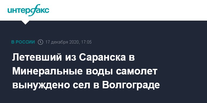 Москва. 17 декабря. INTERFAX.RU - Авиарейс "Саранск - Минеральные воды" в четверг совершил вынужденную посадку в аэропорту Волгограда по техническим причинам.