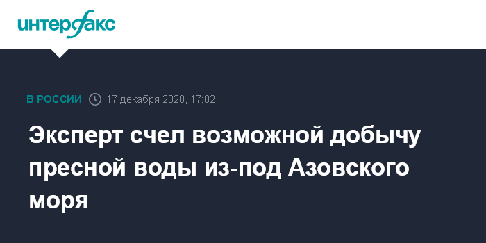 Президент РФ Владимир Путин на своей ежегодной пресс-конференции со ссылкой на специалистов заявил, что в прилегающей к Крыму акватории, под Азовским морем, могут быть "очень большие запасы пресной воды хорошей".
