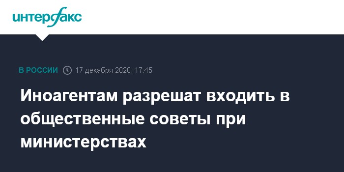 Москва. 17 декабря. INTERFAX.RU - Физическим лицам со статусом иностранного агента разрешат работать в общественных советах при министерствах и ведомствах, следует из поправки, которую одобрил думский комитет по безопасности и противодействию коррупции. Об этом журналистам сообщил председатель СПЧ Валерий Фадеев.