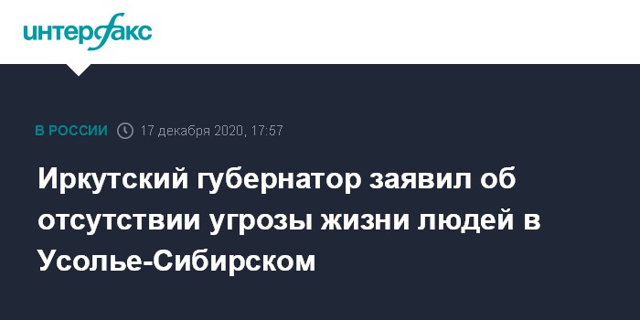 Иркутский губернатор заявил об отсутствии угрозы жизни людей в Усолье-Сибирском