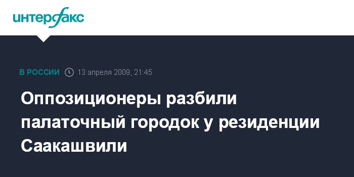 Тбилиси. 13 апреля. INTERFAX.RU - У резиденции президента Грузии Михаила Саакашвили сторонники оппозиции разбили уже более 20 палаток, все это сопровождается аплодисментами собравшихся, передает в понедельник корреспондент "Интерфакса".