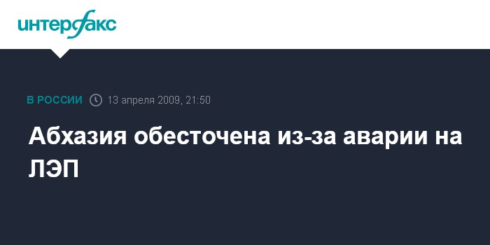 Сухуми. 13 апреля. INTERFAX.RU - Из-за серьезной аварии на высоковольтной линии электропередачи в Гальском районе с 20:00 мск понедельника прервано энергоснабжение столицы Абхазии и всей территории республики, сообщил "Интерфаксу" диспетчер госкомпании "Черноморэнерго".