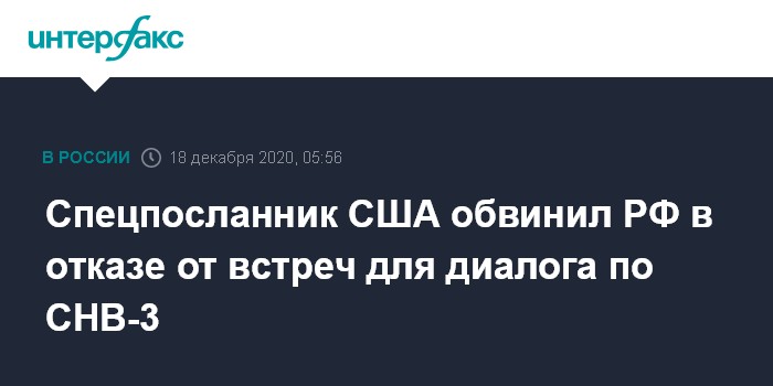 Москва. 18 декабря. INTERFAX.RU - Спецпосланник президента США по контролю над вооружениями Маршалл Биллингсли заявил, что Россия якобы отказывается от встреч для продолжения переговоров по продлению договора по стратегическим наступательным вооружениям (СНВ-3)
