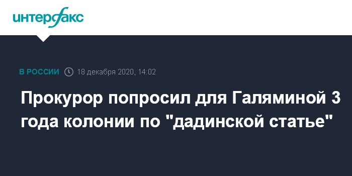 Москва. 18 декабря. INTERFAX.RU - В Тверском суде Москвы особвинитель попросил приговорить депутата Тимирязевского района Юлию Галяминой к трем годам колонии общего режима по так называемой "дадинской статье". Об этом "Интерфаксу" сообщили в суде. Сама Галямина написала об этом в твиттере.