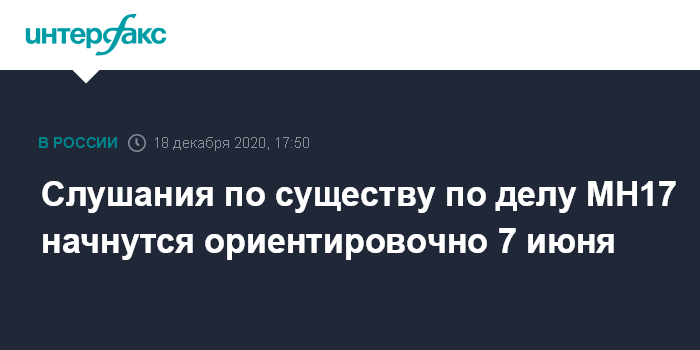 Москва. 18 декабря. INTERFAX.RU - Окружной суд Гааги сообщил, что слушания дела по существу по делу о сбитом под Донецком малайзийском Boeing (рейс МН17) начнутся 7 июня 2021 года. Это предварительная дата.