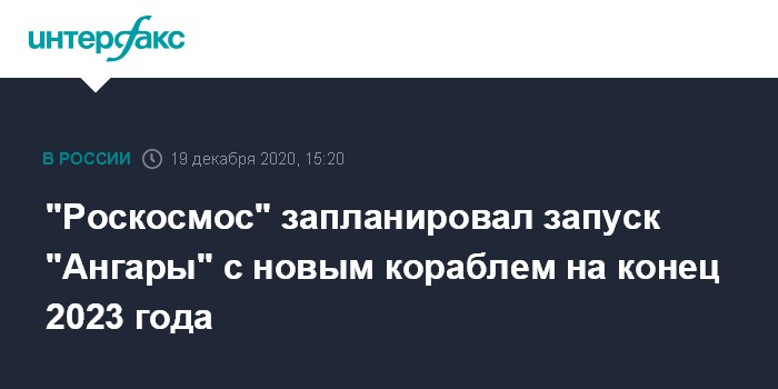 Москва. 19 декабря. INTERFAX.RU - Запуск ракеты "Ангара" с пилотируемым кораблем без экипажа с космодрома "Восточный" запланирован ориентировочно на 15 декабря 2023 года, сообщил журналистам в Омске генеральный директор "Роскосмоса" Дмитрий Рогозин.