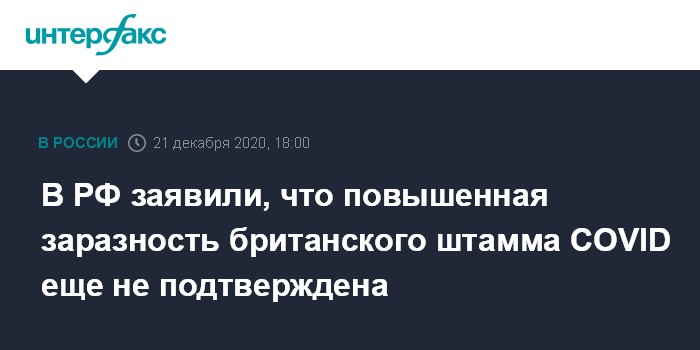Москва. 21 декабря. INTERFAX.RU - Повышенная заразность нового штамма коронавируса, обнаруженного в Великобритании, пока не подтверждена, сообщил замдиректора по научной работе ЦНИИ эпидемиологии Роспотребнадзора Александр Горелов.