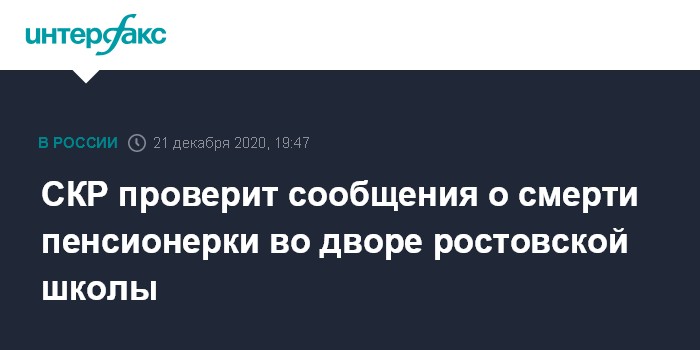 Москва. 21 декабря. INTERFAX.RU - Следователи выясняют обстоятельства гибели пенсионерки возле одной из школ в Ростове-на-Дону, сообщает пресс-служба следственного управления СКР по Ростовской области.