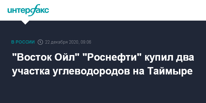 "Восток Ойл" "Роснефти" купил два участка углеводородов на Таймыре