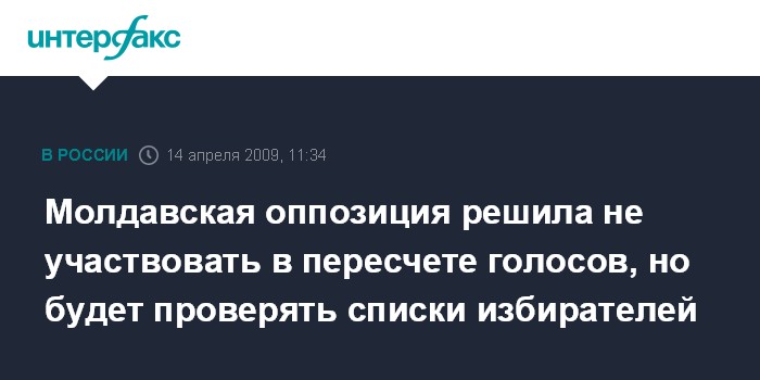 "Мы не видим смысла участвовать в этой процедуре. Лидер коммунистов Владимир Воронин выступил с этой инициативой, чтобы отвлечь внимание от реальной фальсификации выборов, которая произошла при формировании списков избирателей. Поэтому сейчас мы сосредоточены на проверке списков и не будем участвовать в пересчете голосов", - сказал В.Осипов.