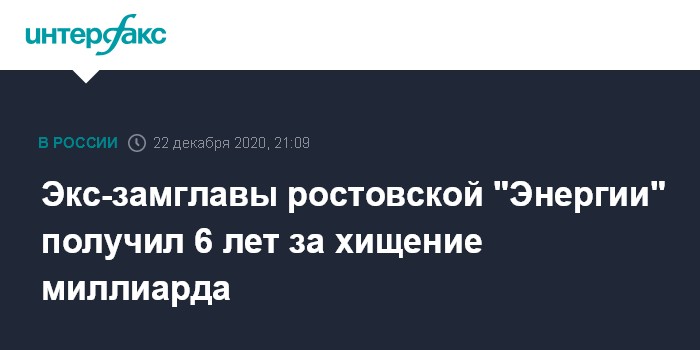 Экс-замглавы ростовской "Энергии" получил 6 лет за хищение миллиарда