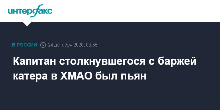 Капитан столкнувшегося с баржей катера в ХМАО был пьян