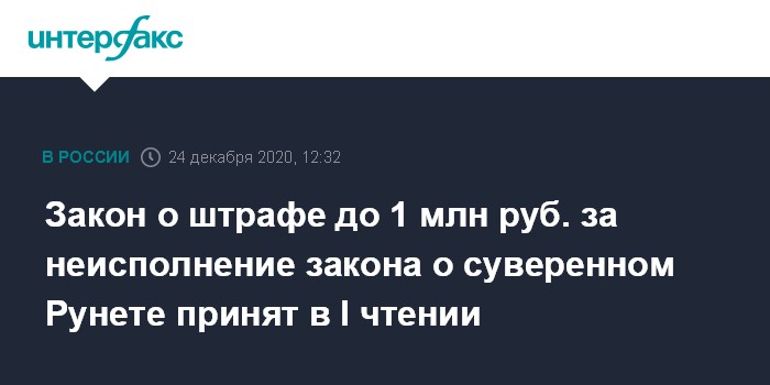 Закон о штрафе до 1 млн руб. за неисполнение закона о суверенном Рунете принят в I чтении