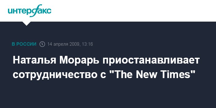 Москва. 14 апреля. INTERFAX.RU - Журналист Наталья Морарь, получившая известность после того, как ей был запрещен въезд в Россию, прервала работу в российском журнале "The New Times".