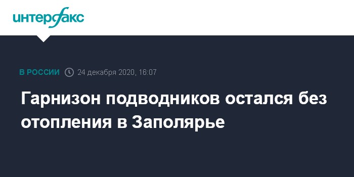 Москва. 24 декабря. INTERFAX.RU - Жители гарнизона подводников в ЗАТО Заозерск Мурманской области в четверг остались без теплоснабжения, сообщается на странице администрации ЗАТО в соцсетях.