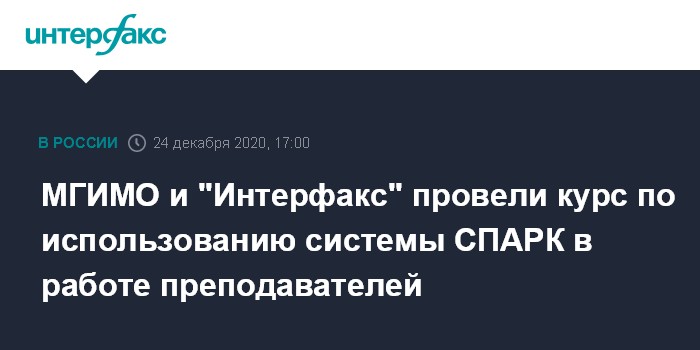 "Мы высоко ценим активное участие МГИМО - одного из ведущих университетов России, широко известного во всем мире - в нашей Университетской программе "Цифровые технологии для образования и науки". Запуск совместного курса, направленного на ознакомление с нашей информационно-аналитической системой СПАРК - лидера рынка оценки рисков, который представляет доступ к информации о всех российских и порядка 400 млн зарубежных компаний, - стал началом важного этапа инкорпорирования в образовательные программы современных методов обучения на основе цифровых решений "Интерфакса". В дальнейшем совместно с МГИМО мы планируем выйти на создание сертифицированных курсов, которые будут давать слушателям ценные практические навыки, сближать будущих выпускников и работодателей", - отметил председатель совета директоров Группы "Интерфакс" Михаил Комиссар.