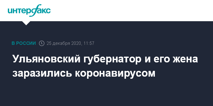 Москва. 25 декабря. INTERFAX.RU - Коронавирусная инфекция выявлена у главы Ульяновской области Сергея Морозова, сообщили "Интерфаксу" в пресс-службе администрации главы региона. Там уточнили, что вирус также нашли у жены главы региона.