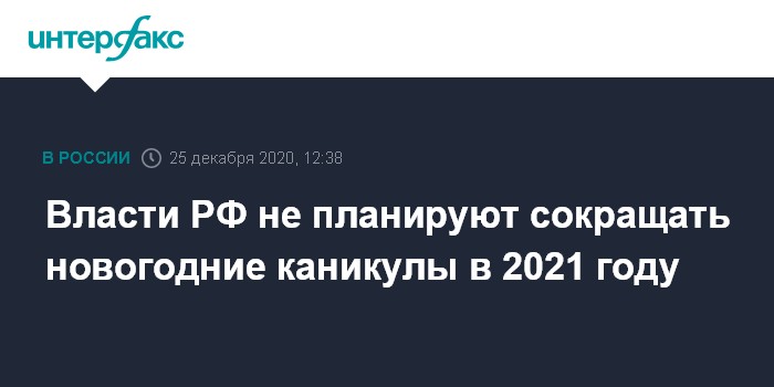 Власти РФ не планируют сокращать новогодние каникулы в 2021 году