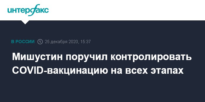 Москва. 25 декабря. INTERFAX.RU - Премьер-министр РФ Михаил Мишустин поручил не ослаблять контроль за вакцинацией от коронавируса на всех этапах - от производства вакцин до их доставки в медицинские учреждения.