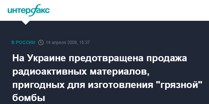 На Украине предотвращена продажа радиоактивных материалов, пригодных для изготовления "грязной" бомбы