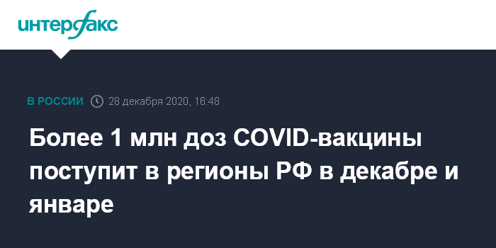 "Мы уже сейчас видим, что наши возможности с точки зрения организации производства вакцин и выпуска в гражданский оборот за декабрь существенно возросли. С учетом сегодняшнего дня мы выпустим в гражданский оборот более 1 млн доз вакцины, которая будет доступна в декабре, доступна в январе", - сказала Голикова на брифинге в понедельник.