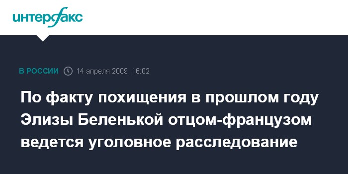 По факту похищения в прошлом году Элизы Беленькой отцом-французом ведется уголовное расследование