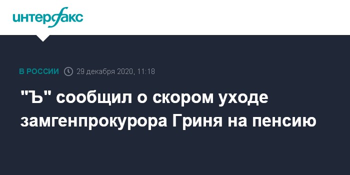 Москва. 29 декабря. INTERFAX.RU - Заместитель генпрокурора России Виктор Гринь, которому 1 января 2021 года исполнится 70 лет – это предельный срок для службы для этой должности – уйдет на пенсию, пишет газета "Коммерсантъ". Гринь контролировал уголовные дела, которые находятся в производстве главного следственного управления и управления по расследованию особо важных дел СКР, а также следственного департамента МВД России.