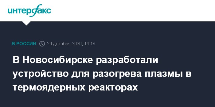Москва. 29 декабря. INTERFAX.RU - Ученые Института ядерной физики имени Будкера (ИЯФ, Новосибирск) разработали прототип устройства для нагрева плазмы в установках термоядерного синтеза, сообщает пресс-служба ИЯФ.