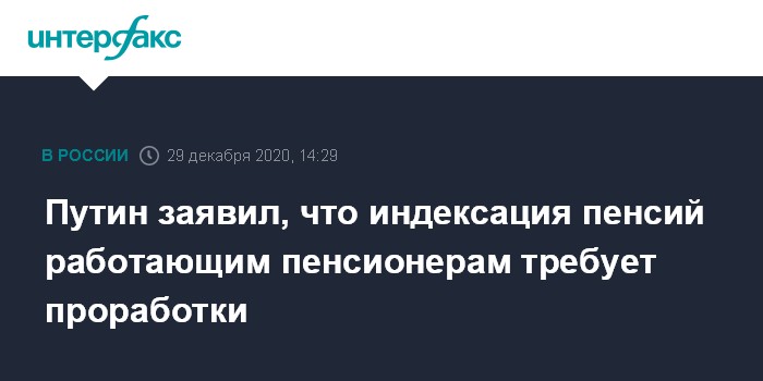 Москва. 29 декабря. INTERFAX.RU - Вопрос об индексации пенсий работающим пенсионерам нуждается в проработке, считает президент РФ Владимир Путин.
