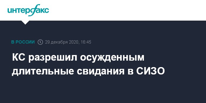 Москва. 29 декабря. INTERFAX.RU - Приговоренные к реальным срокам, которые после приговора остаются в СИЗО, имеют право на длительные свидания, постановил Конституционный суд России.