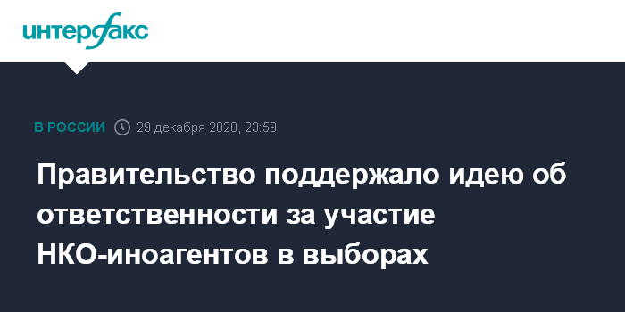 Москва. 29 декабря. INTERFAX.RU - Глава думского комитета по безопасности и противодействию коррупции Василий Пискарев подготовил к внесению в Госдуму законопроект о введении административной ответственности за участие некоммерческих организаций, признанных иностранными агентами, в российских избирательных кампаниях, правительство РФ поддержало инициативу.