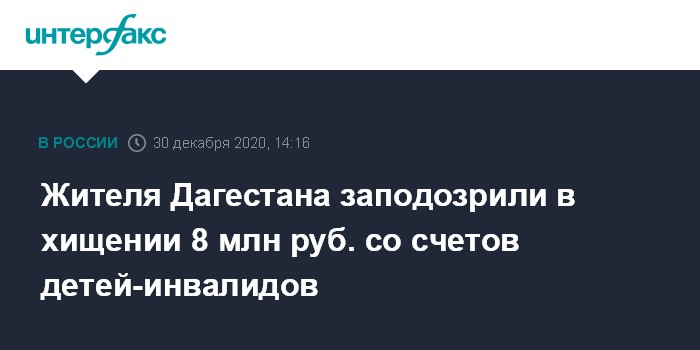 Жителя Дагестана заподозрили в хищении 8 млн руб. со счетов детей-инвалидов