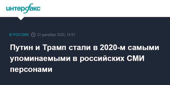 Путин и Трамп стали в 2020-м самыми упоминаемыми в российских СМИ персонами