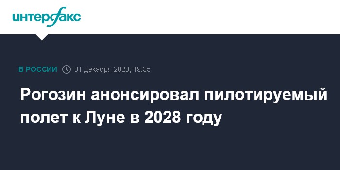 Москва. 31 декабря. INTERFAX.RU - "Роскосмос" отправит корабль с космонавтами на облет Луны в 2028 году, сообщил глава "Роскосмоса" Дмитрий Рогозин.