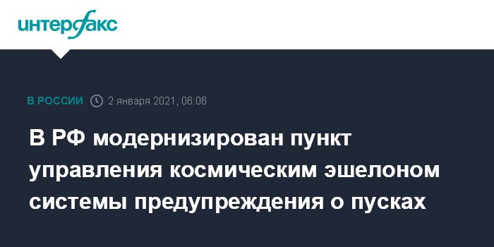 Москва. 2 января. INTERFAX.RU - Пункт управления космическим эшелоном системы предупреждения о ракетном нападении (СПРН) прошел модернизацию, сообщили в Минобороны РФ.