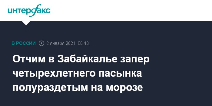 Москва. 2 января. INTERFAX.RU - Житель Забайкальского края стал фигурантом уголовного дела о покушении на убийство ребенка после того, как в морозы запер четырехлетнего пасынка в гараже, сообщает в субботу управления СКР по региону.