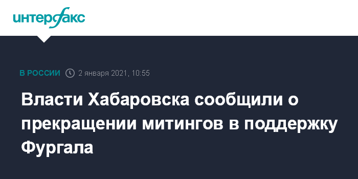 Москва. 2 января. INTERFAX.RU - Несанкционированные массовые акции у здания правительства Хабаровского края в поддержку экс-губернатора региона Сергея Фургала прекратились, сообщила в субботу пресс-служба мэрии Хабаровска.