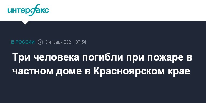 Москва. 3 января. INTERFAX.RU - Пожар произошел утром в воскресенье в частном жилом доме в городе Бородино Красноярского края, погибли три человека, сообщили "Интерфаксу" в пресс-службе главного управления МЧС по региону.