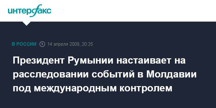 Бухарест. 14 апреля. INTERFAX.RU - Президент Румынии Траян Бэсеску считает, что расследование недавних событий в Молдавии должно вестись под эгидой европейских организаций.