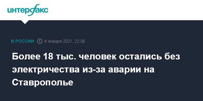 Более 18 тыс. человек остались без электричества из-за аварии на Ставрополье