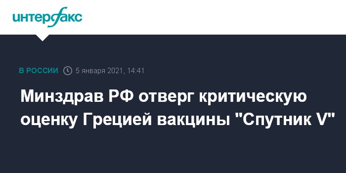 Минздрав РФ отверг критическую оценку Грецией вакцины "Спутник V"