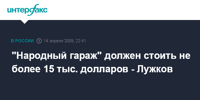 "Народный гараж" должен стоить не более 15 тыс. долларов - Лужков